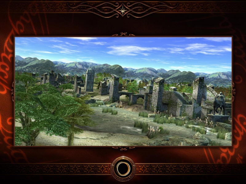 The Wargs encounter a load of Soldiers in the north. The main GOndor Castle is across the river on a hill to the north east.